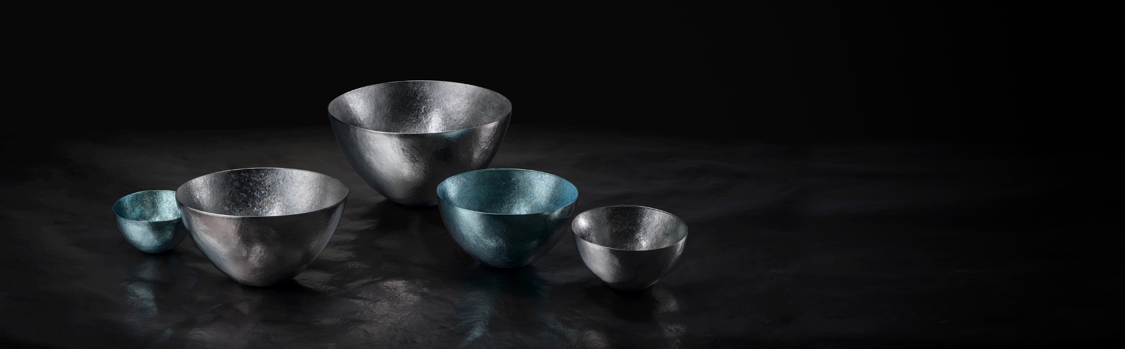 真空二重構造の機能と想いを食器にも。全て入れ子になっており、しまう姿も美しく、改良を重ね使いやすい形にたどり着きました。 今の生活にも寄り添う美と機能に輝くアートピースを創造していきます。